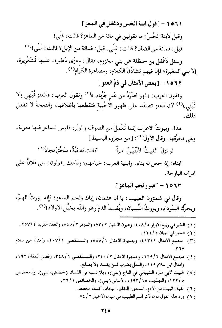[1] الخبر في ربيع الأبرار 5/408، وعيون الأخبار 2/73، والمزهر 2/545، والعقد الفريد 4/257.