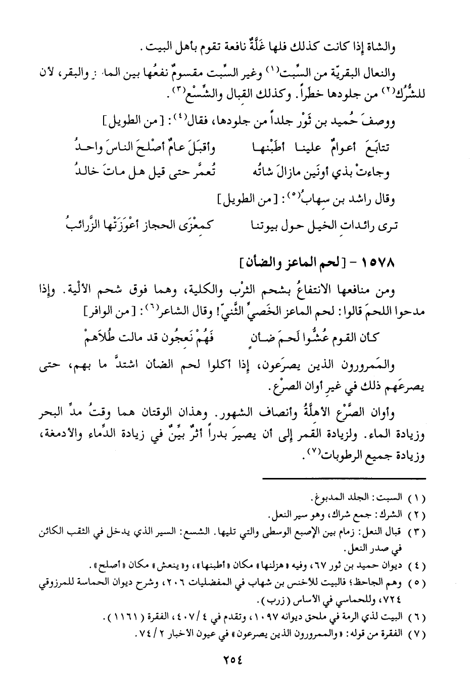 [4] ديوان حميد بن ثور 67، وفيه «هزلنها» مكان «أطبنها» ، و «ينعش» مكان «أصلح» .
