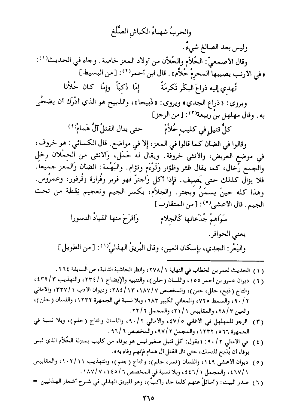 «في الأرنب يصيبها المحرم حلّام» . قال ابن أحمر [2] : [من البسيط]