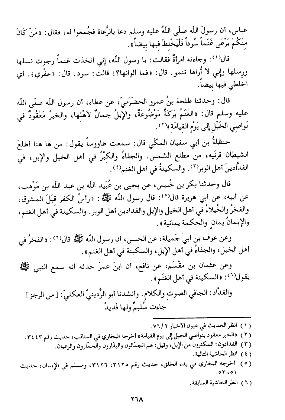 [2] «الخير معقود بنواصي الخيل إلى يوم القيامة» أخرجه البخاري في المناقب، حديث رقم 3443.
