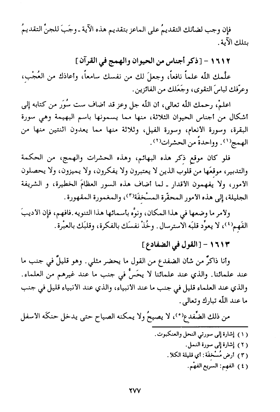1612-[ذكر أجناس من الحيوان والهمج في القرآن]