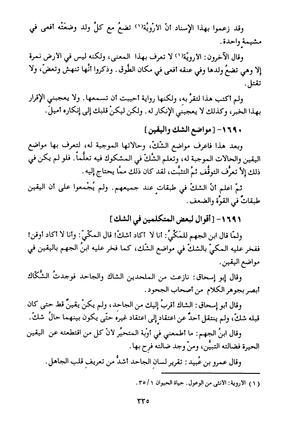 وقد زعموا بهذا الإسناد أنّ الأرويّة [1] تضع مع كلّ ولد وضعته أفعى في مشيمة واحدة.