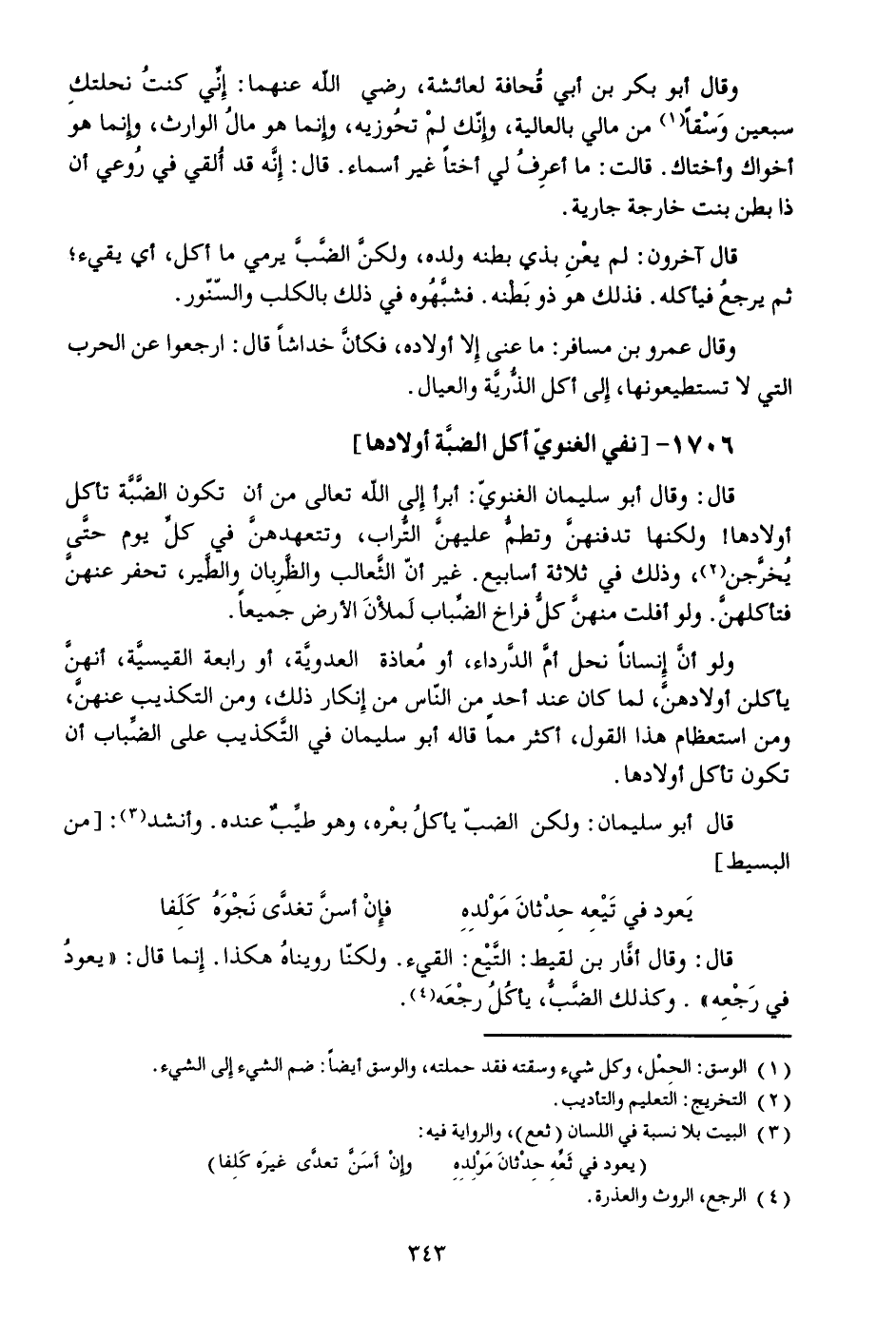 1706-[نفي الغنويّ أكل الضبّة أولادها]