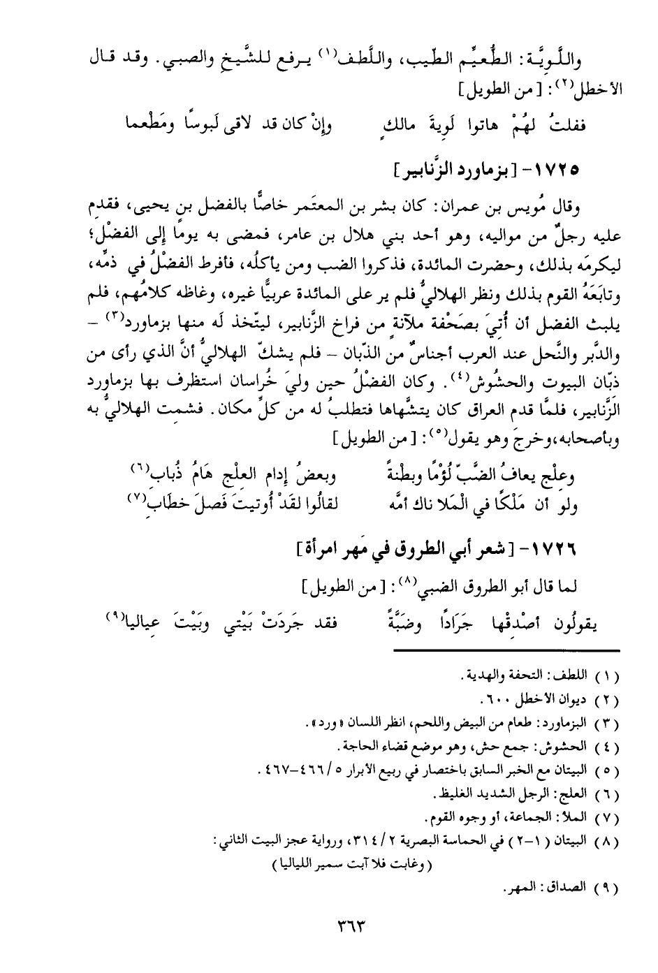 وعلج يعاف الضّبّ لؤما وبطنة ... وبعض إدام العلج هام ذباب [6]