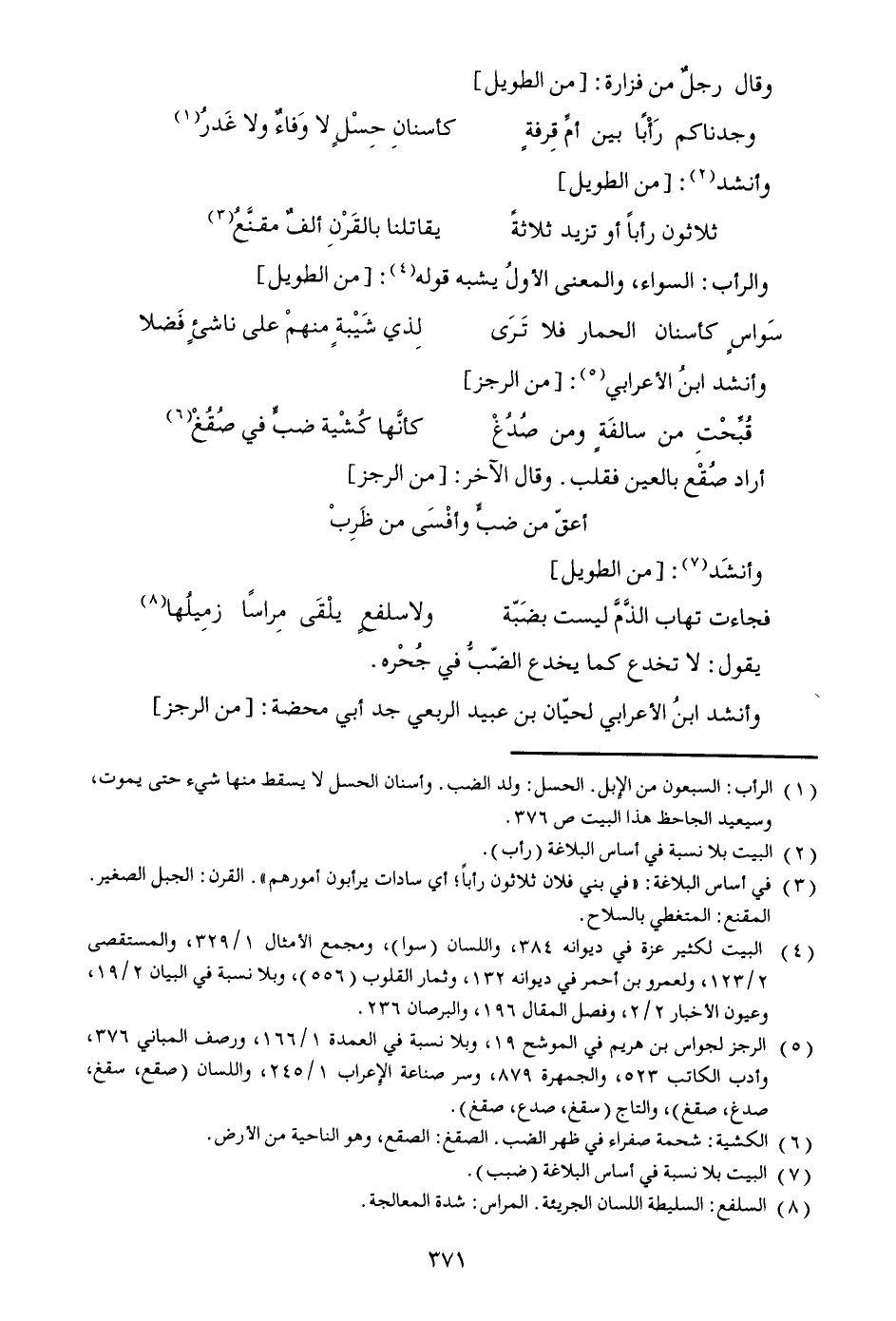 [1] الرأب: السبعون من الإبل. الحسل: ولد الضب. وأسنان الحسل لا يسقط منها شيء حتى يموت، وسيعيد الجاحظ هذا البيت ص 376.