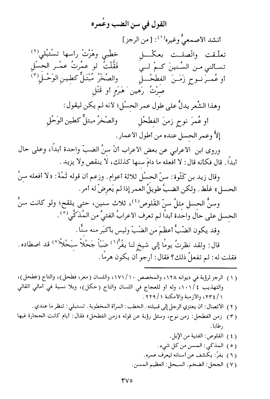 قال: ولقد نظرت يوما إلى شيخ لنا يفرّ [6] ضبّا جحلا سبحلا [7] قد اصطاده.