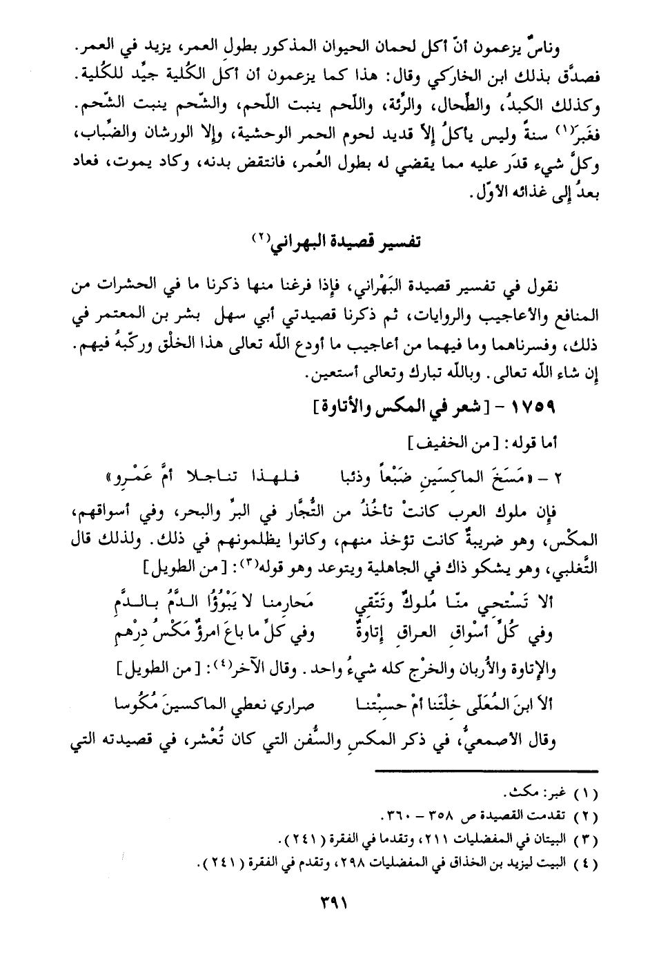 [4] البيت ليزيد بن الخذاق في المفضليات 298، وتقدم في الفقرة (241) .