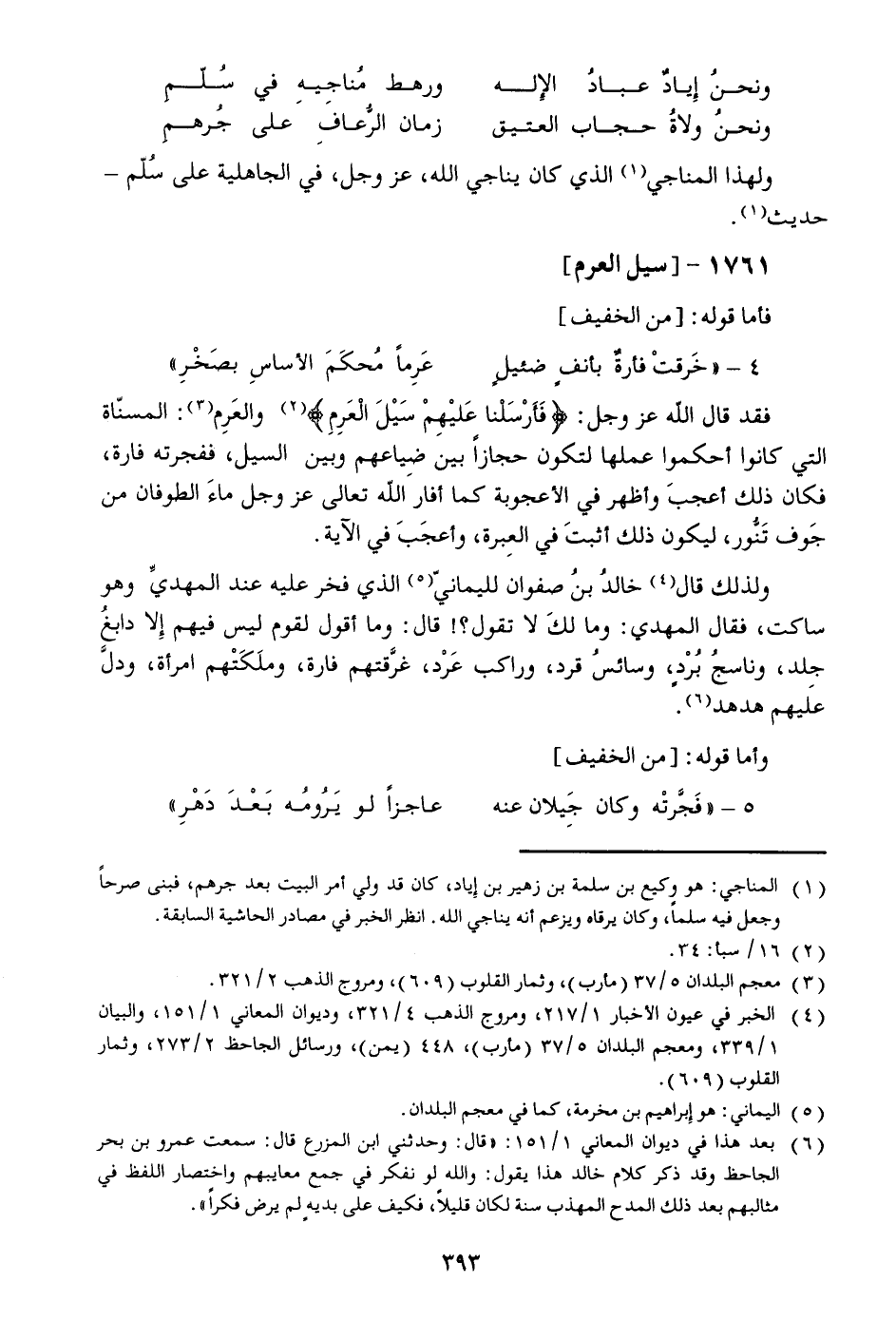 [4] الخبر في عيون الأخبار 1/217، ومروج الذهب 4/321، وديوان المعاني 1/151، والبيان 1/339، ومعجم البلدان 5/37 (مأرب) ، 448 (يمن) ، ورسائل الجاحظ 2/273، وثمار القلوب (609) .