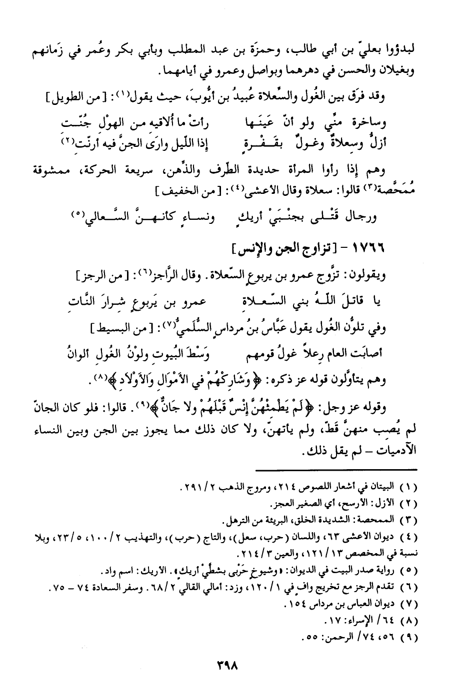ويقولون: تزوّج عمرو بن يربوع السّعلاة. وقال الرّاجز [6] : [من الرجز]