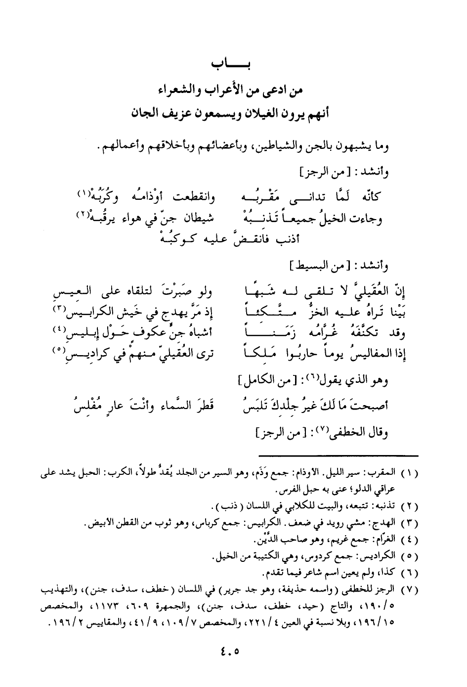 باب من ادعى من الأعراب والشعراء أنهم يرون الغيلان ويسمعون عزيف الجان