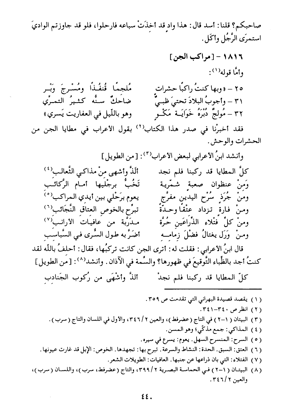 فقد أخبرنا في صدر هذا الكتاب [2] بقول الأعراب في مطايا الجن من الحشرات والوحش.