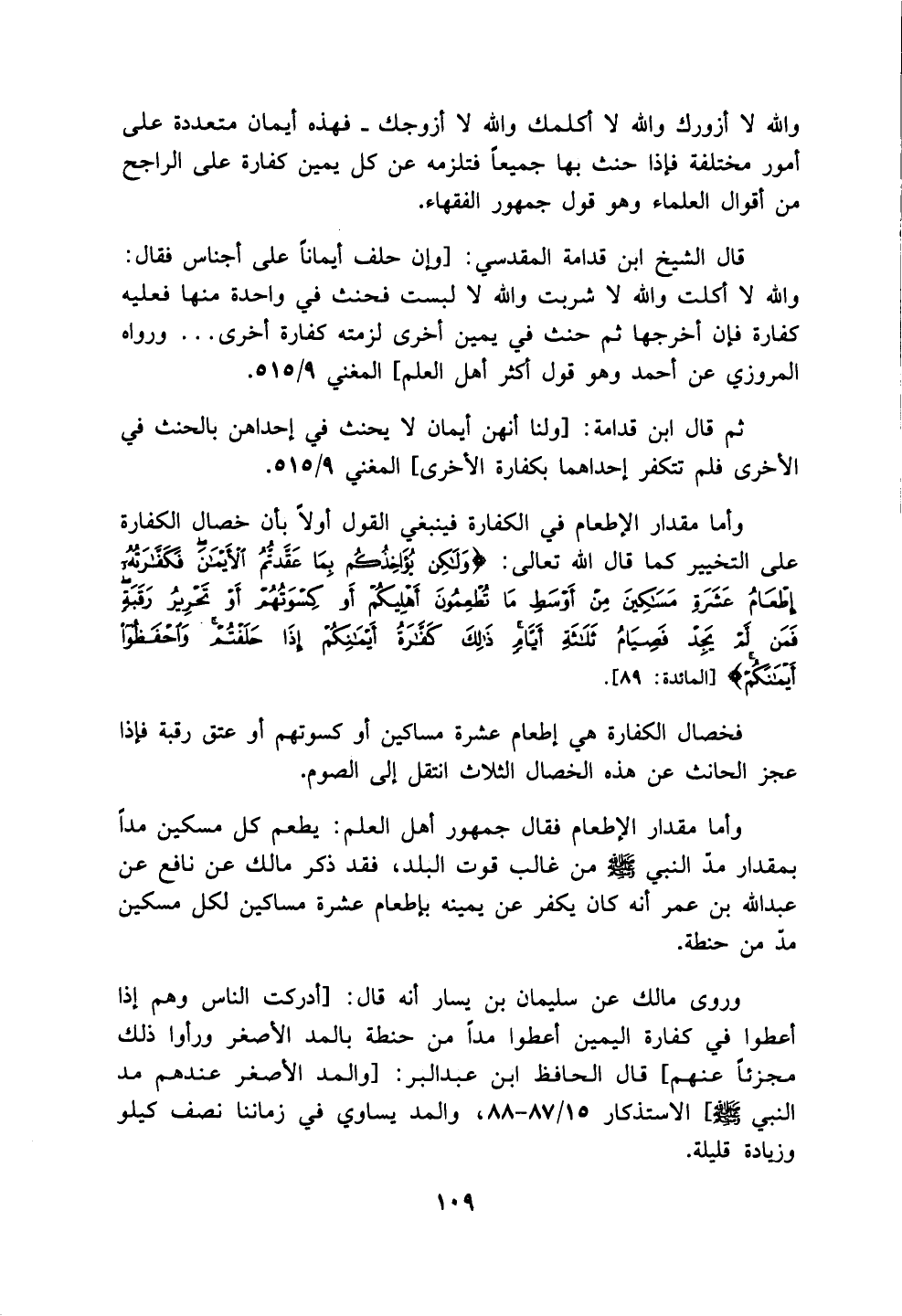 وروى مالك عن سليمان بن يسار أنه قال: [أدركت الناس وهم إذا أعطوا في كفارة اليمين أعطوا مداً من حنطة بالمد الأصغر ورأوا ذلك مجزئاً عنهم] قال الحافظ ابن عبد البر: [والمد الأصغر عندهم مد النبي - صلى الله عليه وسلم -] الاستذكار 15/ 87 - 88. والمد يساوي في زماننا نصف كيلو وزيادة قليلة.