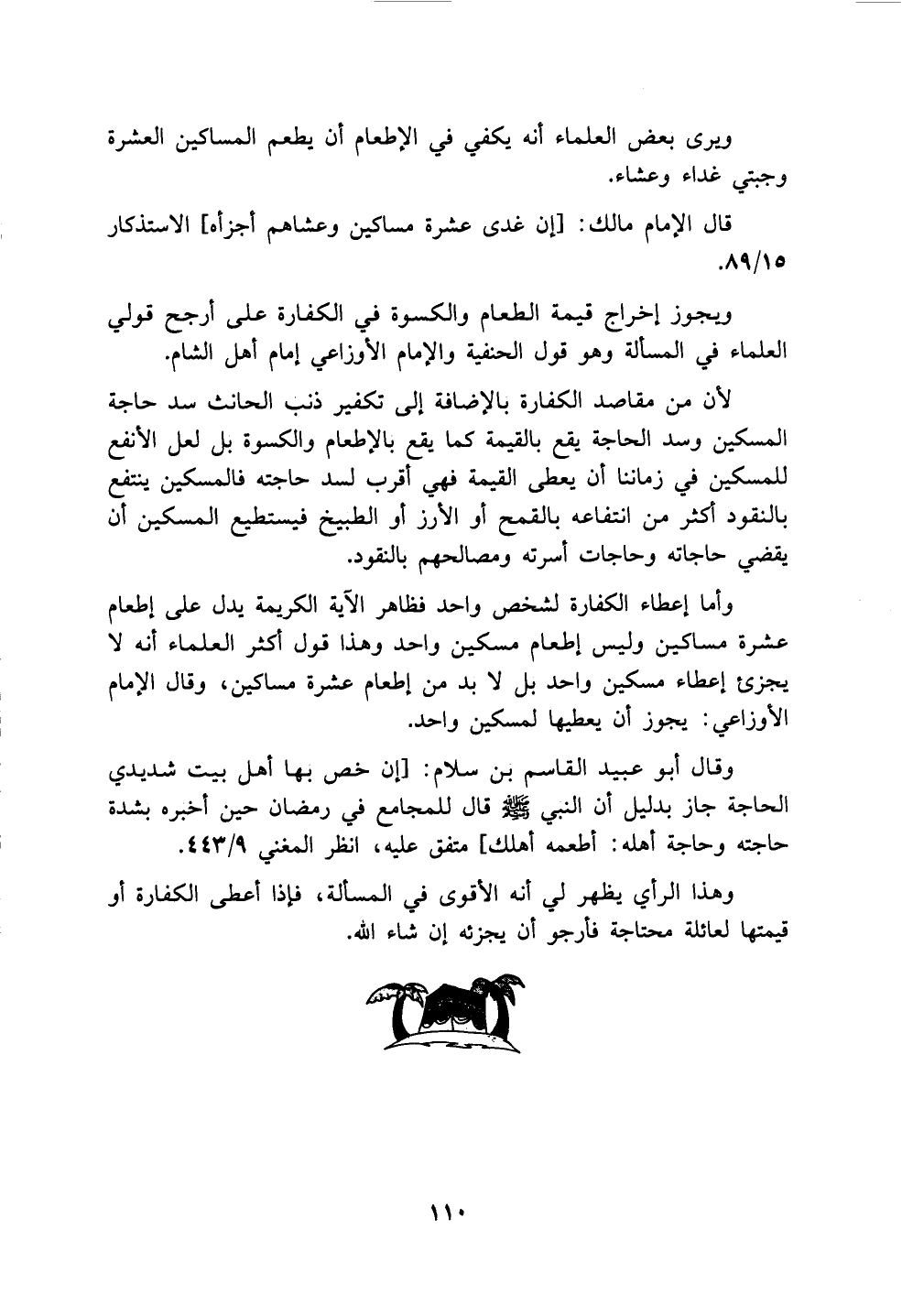 وهذا الرأي يظهر لي أنه الأقوى في المسألة، فإذا أعطى الكفارة أو قيمتها لعائلة محتاجة فأرجو أن يجزئه إن شاء الله.