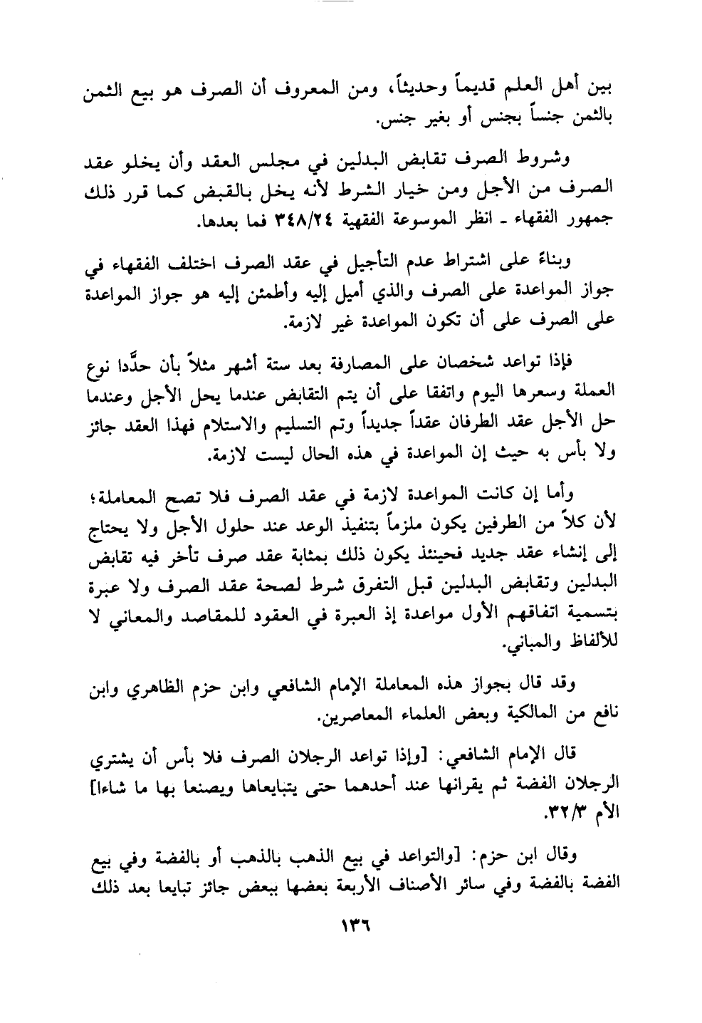 بين أهل العلم قديماً وحديثاً، ومن المعروف أن الصرف هو بيع الثمن بالثمن جنساً بجنس أو بغير جنس.
