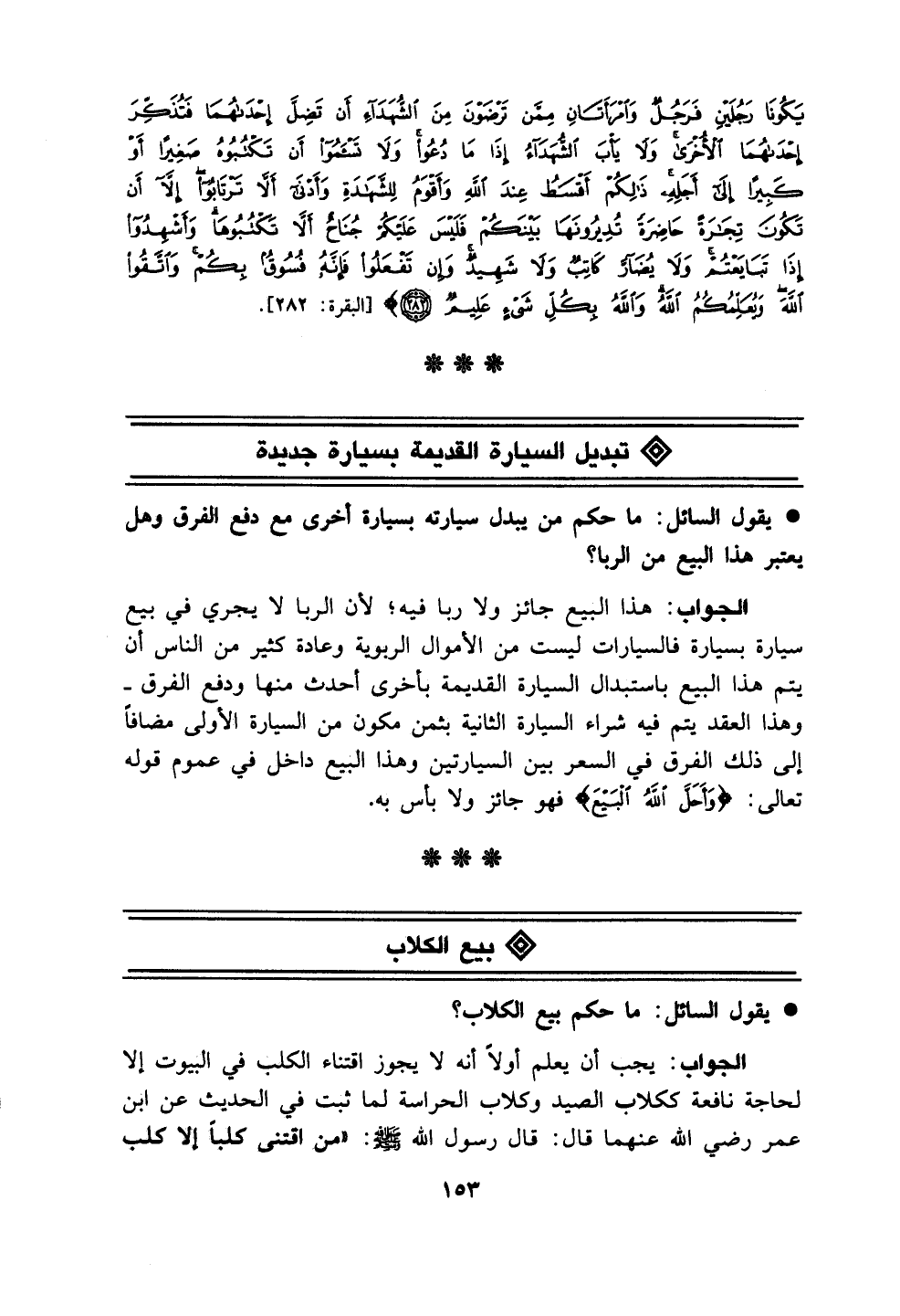 الجواب: هذا البيع جائز ولا ربا فيه لأن الربا لا يجري في بيع سيارة بسيارة فالسيارات ليست من الأموال الربوية وعادة كثير من الناس أن يتم هذا البيع باستبدال السيارة القديمة بأخرى أحدث منها ودفع الفرق. وهذا العقد يتم فيه شراء السيارة الثانية بثمن مكون من السيارة الأولى مضافاً إلى ذلك الفرق في السعر بين السيارتين وهذا البيع داخل في عموم قوله تعالى: (وَأَحَلَّ اللَّهُ الْبَيْعَ) فهو جائز ولا بأس به.