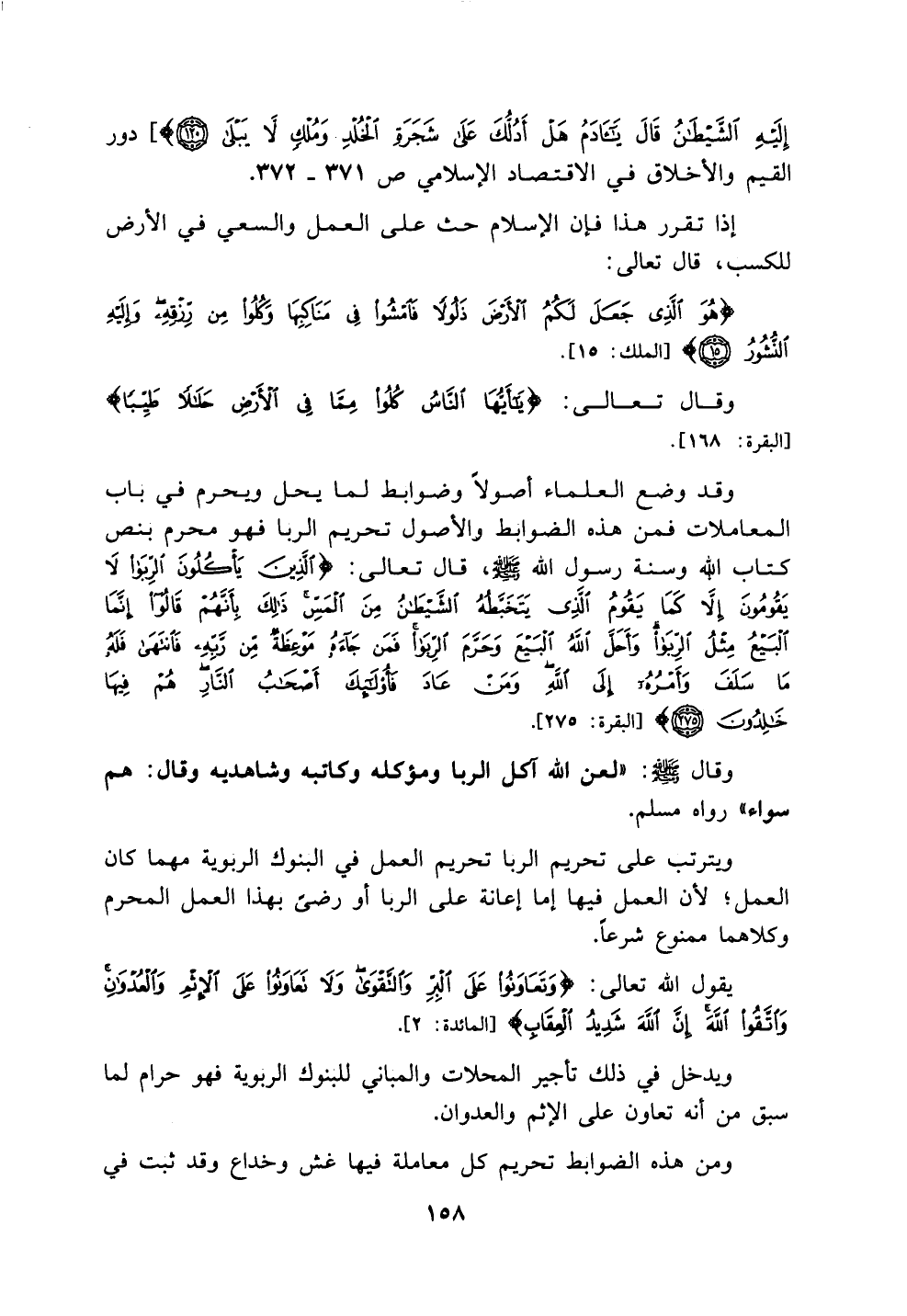 إِلَيْهِ الشَّيْطَانُ قَالَ يَا آدَمُ هَلْ أَدُلُّكَ عَلَى شَجَرَةِ الْخُلْدِ وَمُلْكٍ لَا يَبْلَى)] دور القيم والأخلاق في الاقتصاد الإسلامي ص 371 - 372.