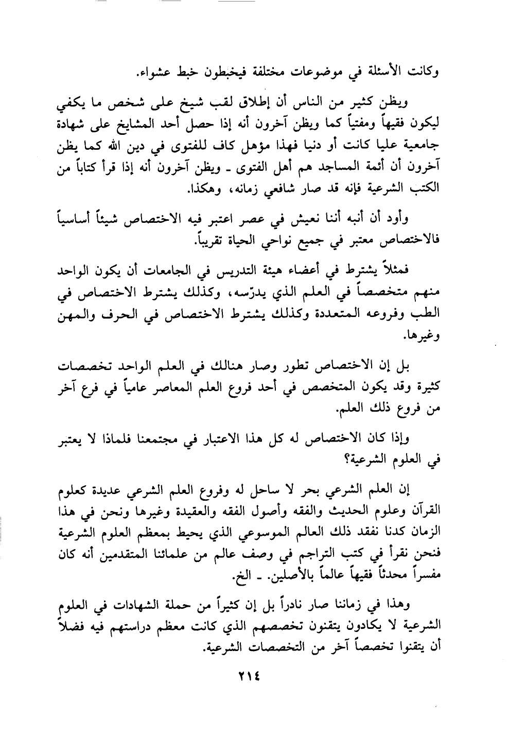 وإذا كان الاختصاص له كل هذا الاعتبار في مجتمعنا فلماذا لا يعتبر في العلوم الشرعية؟