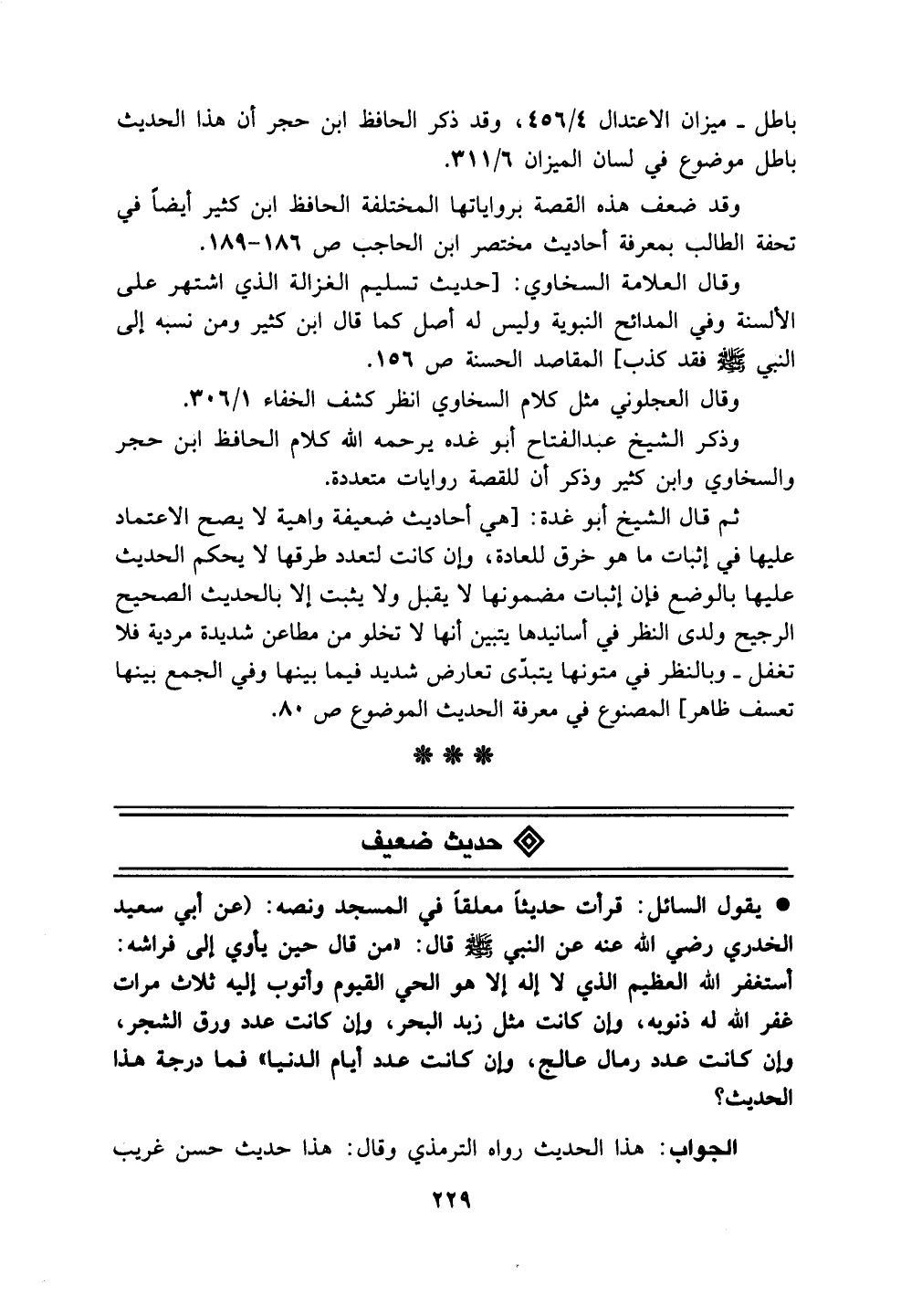 ثم قال الشيخ أبو غدة: [هي أحاديث ضعيفة واهية لا يصح الاعتماد عليها في إثبات ما هو خرق للعادة وإن كانت لتعدد طرقها لا يحكم الحديثي عليها بالوضع فإن إثبات مضمونها لا يقبل ولا يثبت إلا بالحديث الصحيح الرجيح ولدى النظر في أسانيدها يتبين أنها لا تخلو من مطاعن شديدة مردية فلا تغفل. وبالنظر في متونها يتبدّى تعارض شديد فيما بينها وفي الجمع بينها تعسف ظاهر] المصنوع في معرفة الحديث الموضوع ص 80.