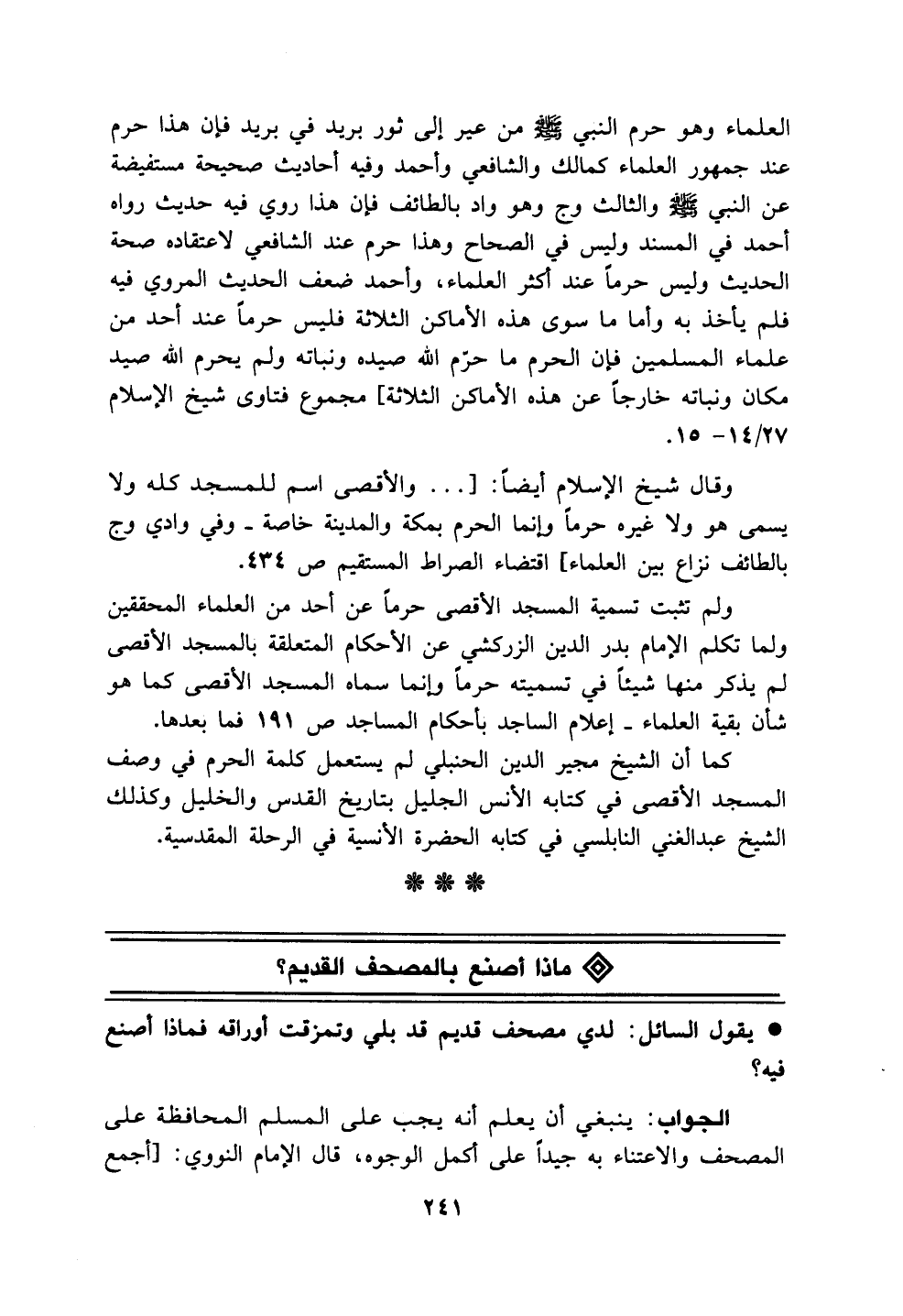 وقال شيخ الإسلام أيضاً: [ ... والأقصى اسم للمسجد كله ولا يسمى هو ولا غيره حرماً وإنما الحرم بمكة والمدينة خاصة. وفي وادي وج بالطائف نزاع بين العلماء] اقتضاء الصراط المستقيم ص 434.