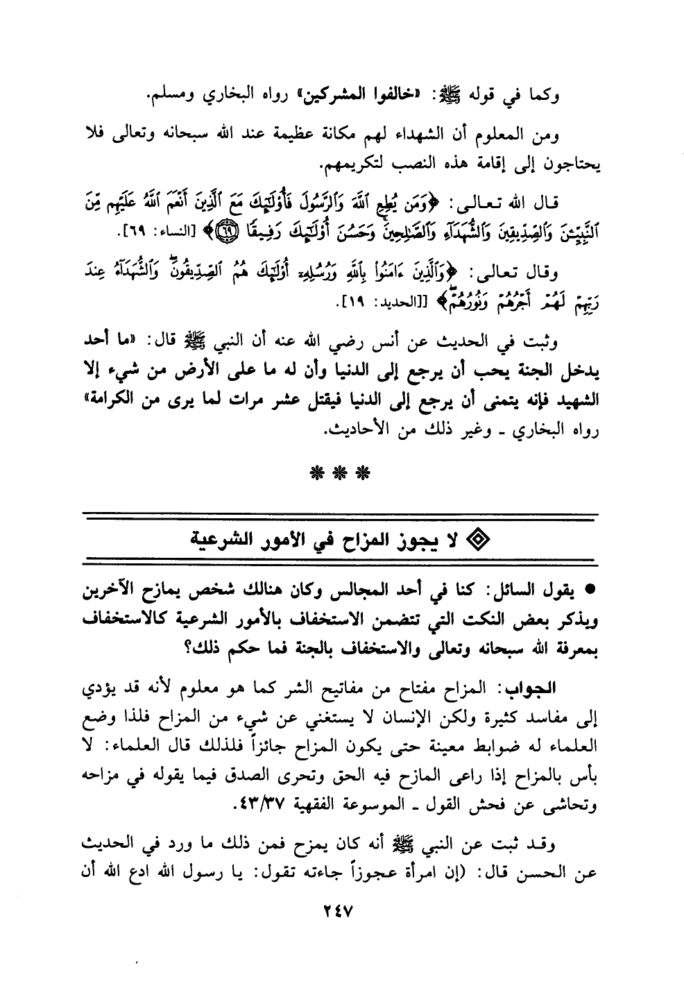 يقول السائل: كنا في أحد المجالس وكان هنالك شخص يمازح الآخرين ويذكر بعض النكت التي تتضمن الاستخفاف بالأمور الشرعية كالاستخفاف بمعرفة الله سبحانه وتعالى والاستخفاف بالجنة فما حكم ذلك؟