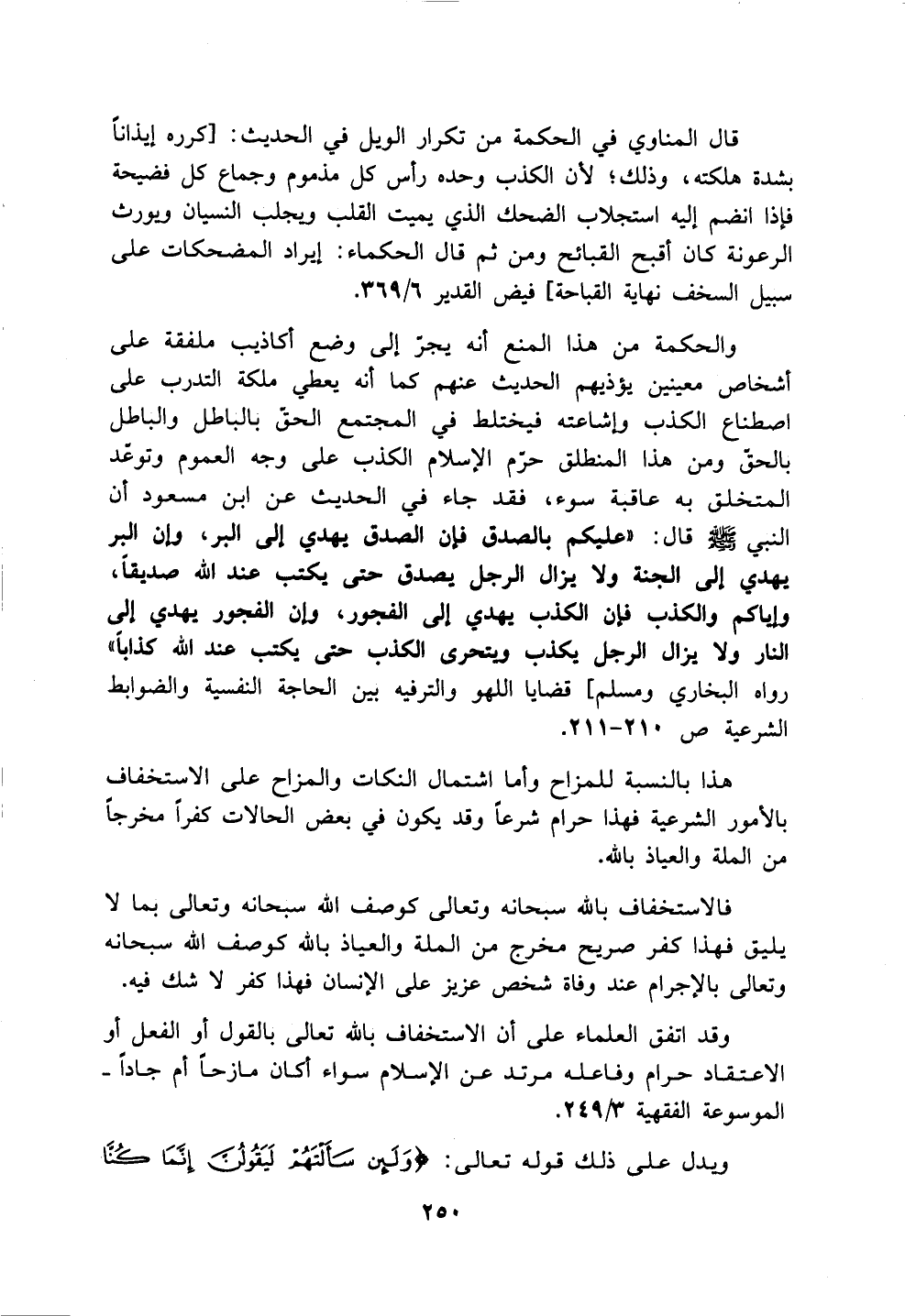 هذا بالنسبة للمزاح وأما اشتمال النكات والمزاح على الاستخفاف بالأمور الشرعية فهذا حرام شرعاً وقد يكون في بعض الحالات كفراً مخرجاً من الملة والعياذ بالله.