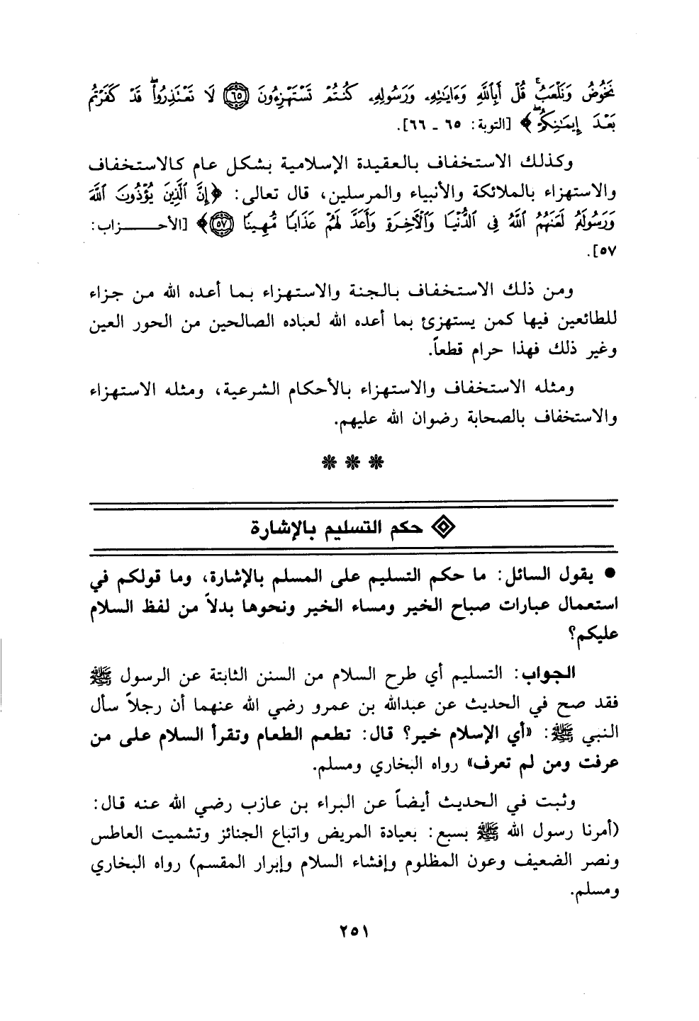 نَخُوضُ وَنَلْعَبُ قُلْ أَبِاللَّهِ وَءَايَاتِهِ وَرَسُولِهِ كُنْتُمْ تَسْتَهْزِئُونَ لَا تَعْتَذِرُوا قَدْ كَفَرْتُمْ بَعْدَ إِيمَانِكُمْ) سورة التوبة الآية 65.