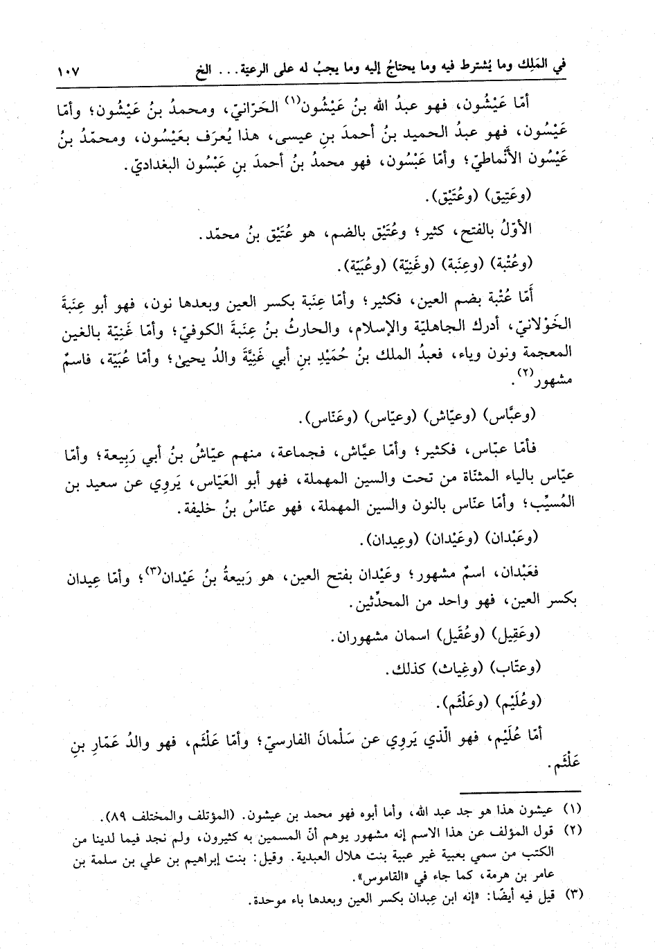 وعباس وعياش وعياس وعناس فأما عباس ، فكثير ، وأما عياش ، فجماعة منهم عياش بن أبي ربيعة ، وأما عياس بالياء المثناة من تحت والسين ، فهو أبو العياس ، يروي عن سعيد بن المسيب ، وأما عناس بالنون والسين المهملة ، فهو عناس بن خليفة .
