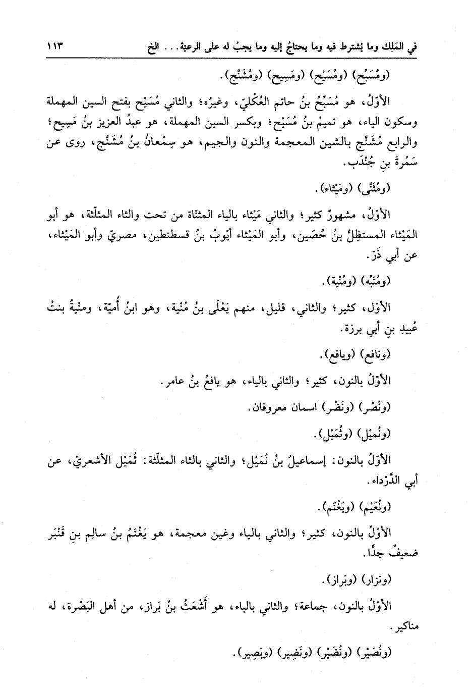 ومنبه ومنية الأول ، كثير ، والثاني ، قليل ، منهم يعلى بن منية ، هو ابن أمية ومنيه بنت عبيد بن أبي برزة ونافع ويافع الأول بالنون ، كثير ، والثاني بالياء ، هو يافع بن عامر .