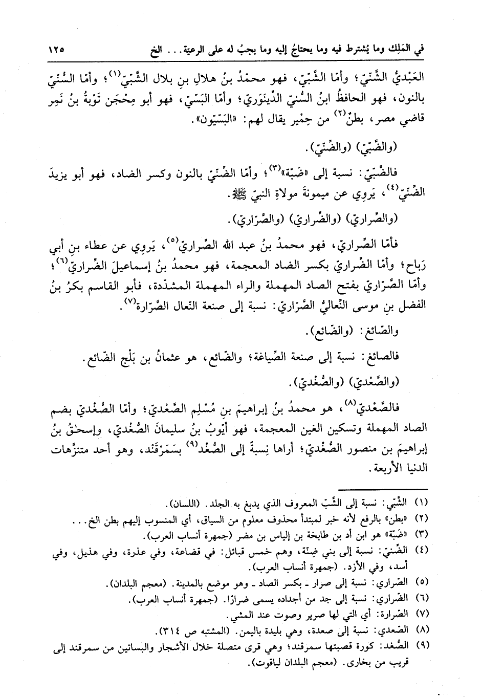العَبْدي الشَّني ؛ وأما الشَّبّيّ ، فهو محمد بن هلال بن بلال الشَّبيّ ؛ وأما السُّني بالنون ، فهو الحافظ ابن السُّني الدينوري ؛ وأما البَسّيّ ، فهو أبو مِحجن توْبة بن نَمِر قاضي مصر ، بطنٌ من حمير يقال لهم : " البَسّيّون " .