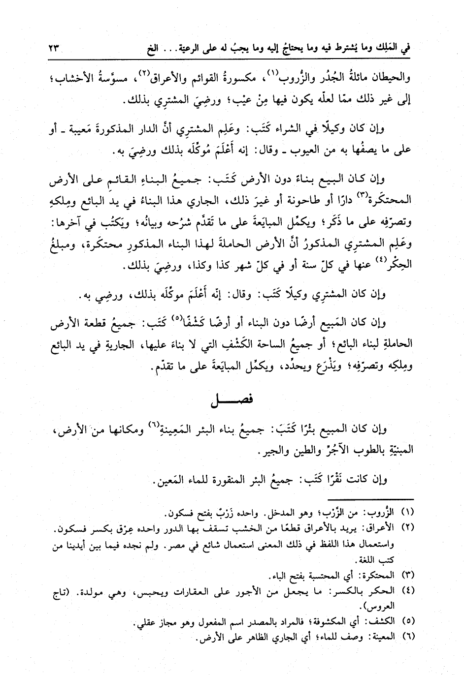 كتب : جميع بناء البئر المعينة ومكانها من الأرض ، المبنية بالطوب الآجر والطين والجير .