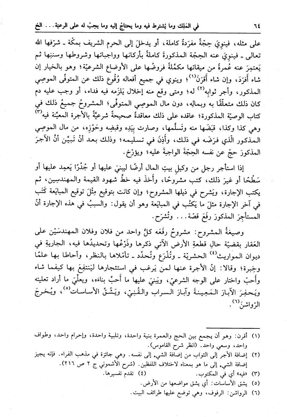 إذا استأجر رجل من وكيل بيت المال أرضاً ليبني عليها أو جدراً يعمد عليها أو سطحاً أو غير ذلك ، كتب مشروحاً ، وأخذ فيه خط شهود القيمة والمهندسين ، ثم يكتب الإجارة ، ويشرح في ذيلها المشروح ، وإن كانت بتوقيع مثل توقيع المبايعة كتب في آخر الإجارة مثل ما يكتب في المبايعة وهو أن يقول : والسبب في هذه الإجارة أن المستأجر المذكور رفع قصة . . . وتشرح . وصيغة المشروح : مشروح رفعه كل واحد من فلان وفلان المهندسين على العقار بقضية حال قطعة الأرض الآتي ذكرها وذرعها وتحديدها فيه ، الجارية في ديوان المواريث الحشرية - وتذرع وتحدد - تأملاها بالنظر ، وأحاطا بها علماً وخبرة ، وقالا : إن الأجرة عنها لمن يرغب في استئجارها لينتفع بها كيف شاء وأحب واختار على الوجه الشرعي ، ويبني عليها ما أحب بناءه ، ويعلى ما أراد تعليته ويحفر الآبار المعينة وآبار السراب والقنى ، ويشق الأساسات ، ويخرج الرواشن .