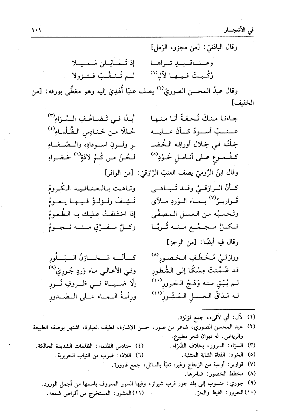 وقال عبد المحسن الصوري يصف عنبا أهدي إليه وهو مغطى بورقه :