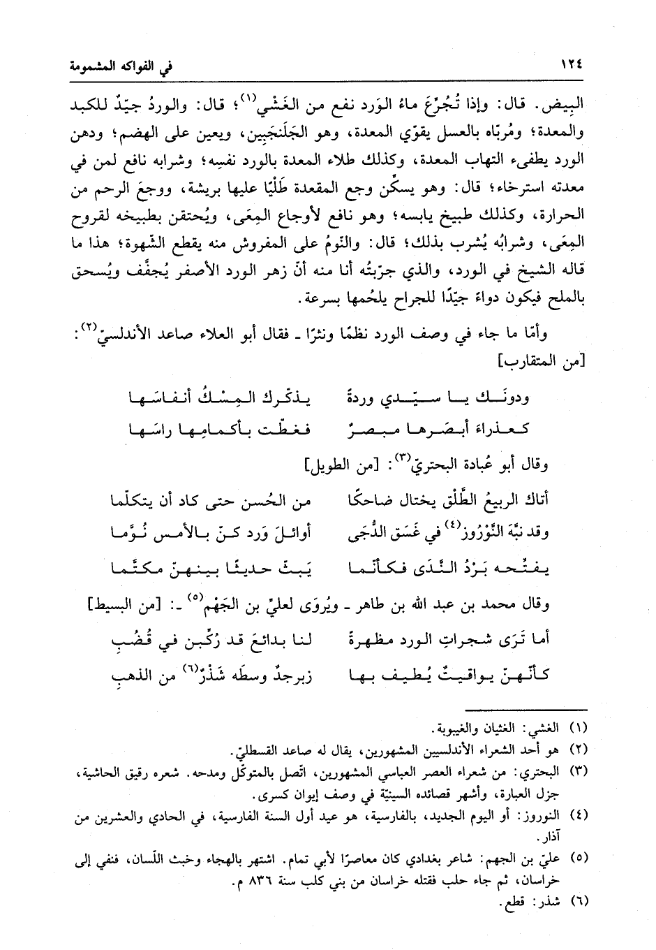 وأما ما جاء في وصف الورد نظما ونثرا - فقال أبو العلاء صاعد الأندلسي :