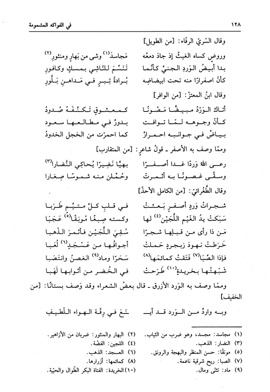 وروضٍ كساه الغيث إذ جاد دمعُه . . . مجاسد وشي من بَهارٍ ومنثورِ