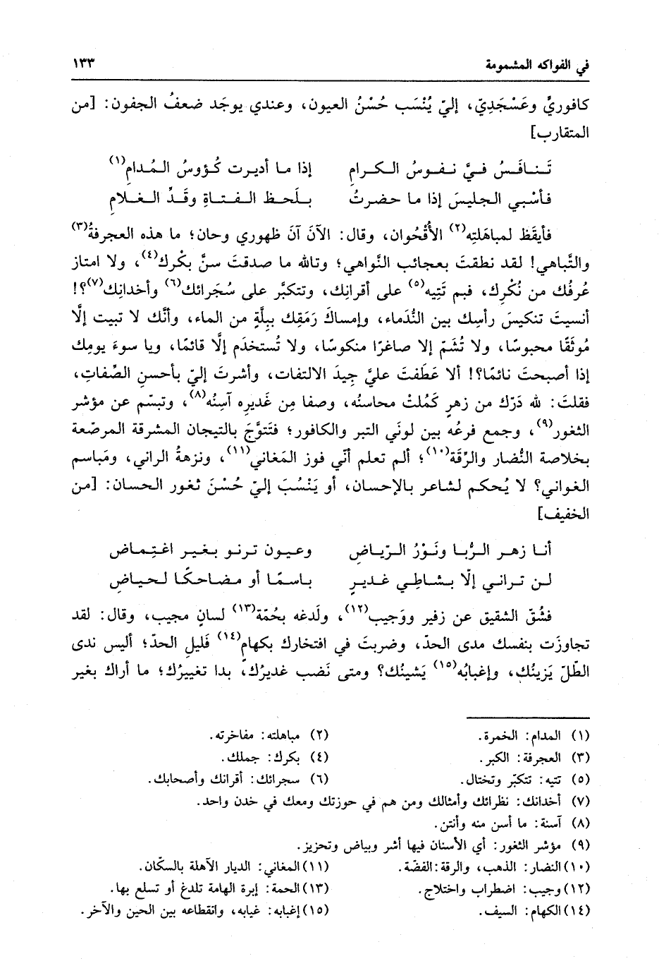 تنافسُ في نفوسُ الكرامِ . . . إذا ما أدبرت كُئوسُ المُدامِ