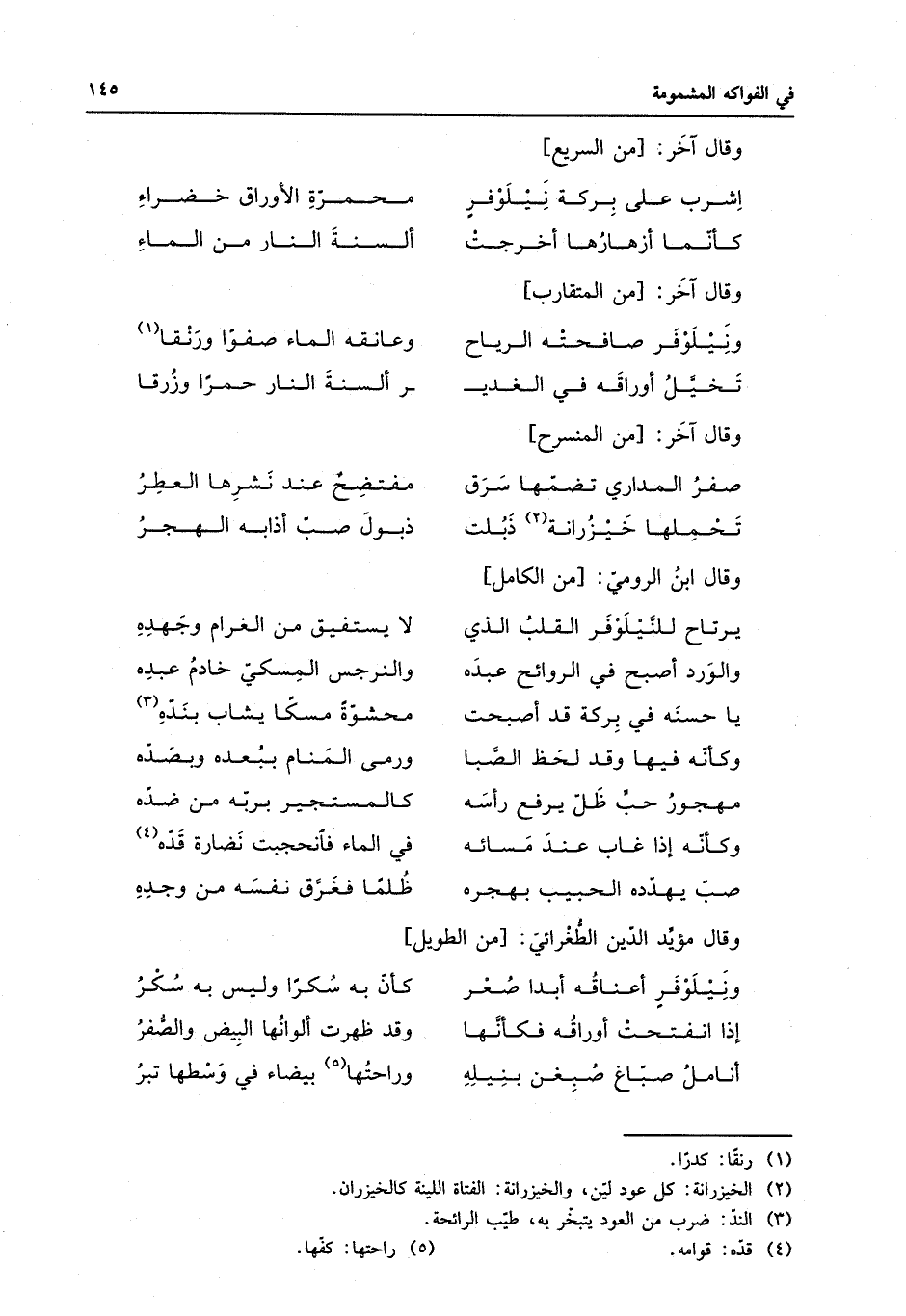 ونيلوفرٍ أعناقُه أبدا صُفرُ . . . كان به سُكرا وليس به سُكْرُ