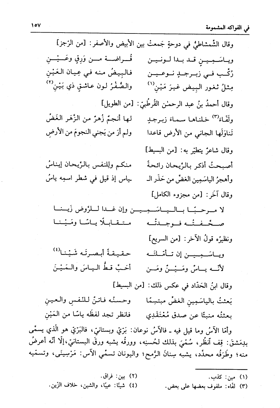 ويا سمينٍ قد بدا لونين . . . قُراضة من ورقٍ وعينِ رُكب في زبرجدٍ نوعين . . . فالبيضُ في عيان العينِ