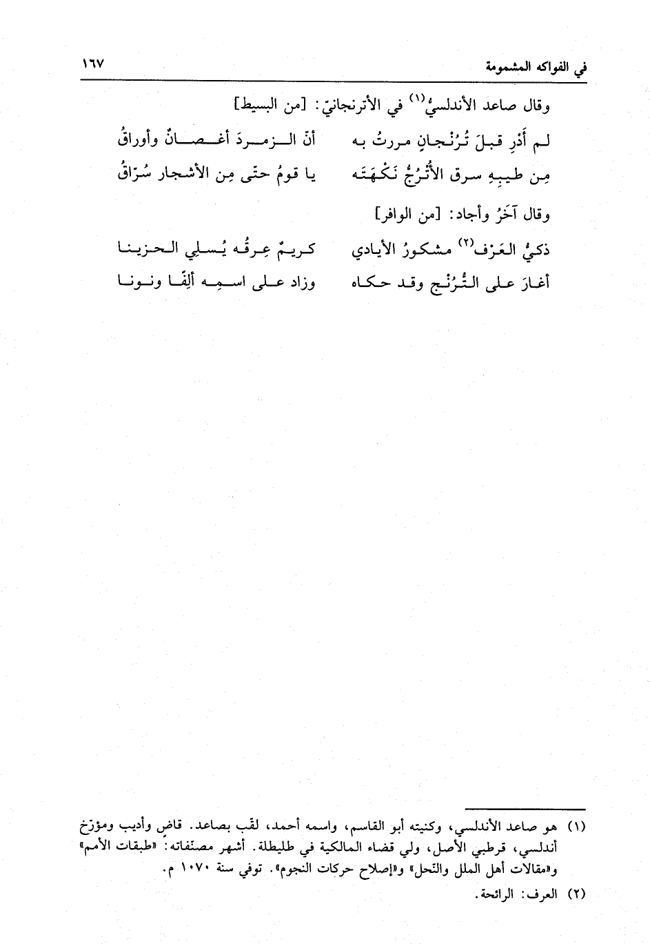 لم أدرِ قبل تُرُنْجانٍ مررتُ به . . . أن الزمردَ أغصانٌ وأوراقُ
