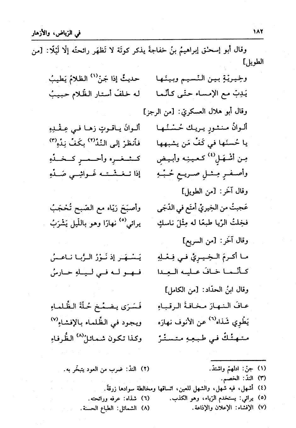 وقال أبو إسحاق إبراهيم بن خفاجة يذكر كونه لا تظهر رائحته إلا ليلا :