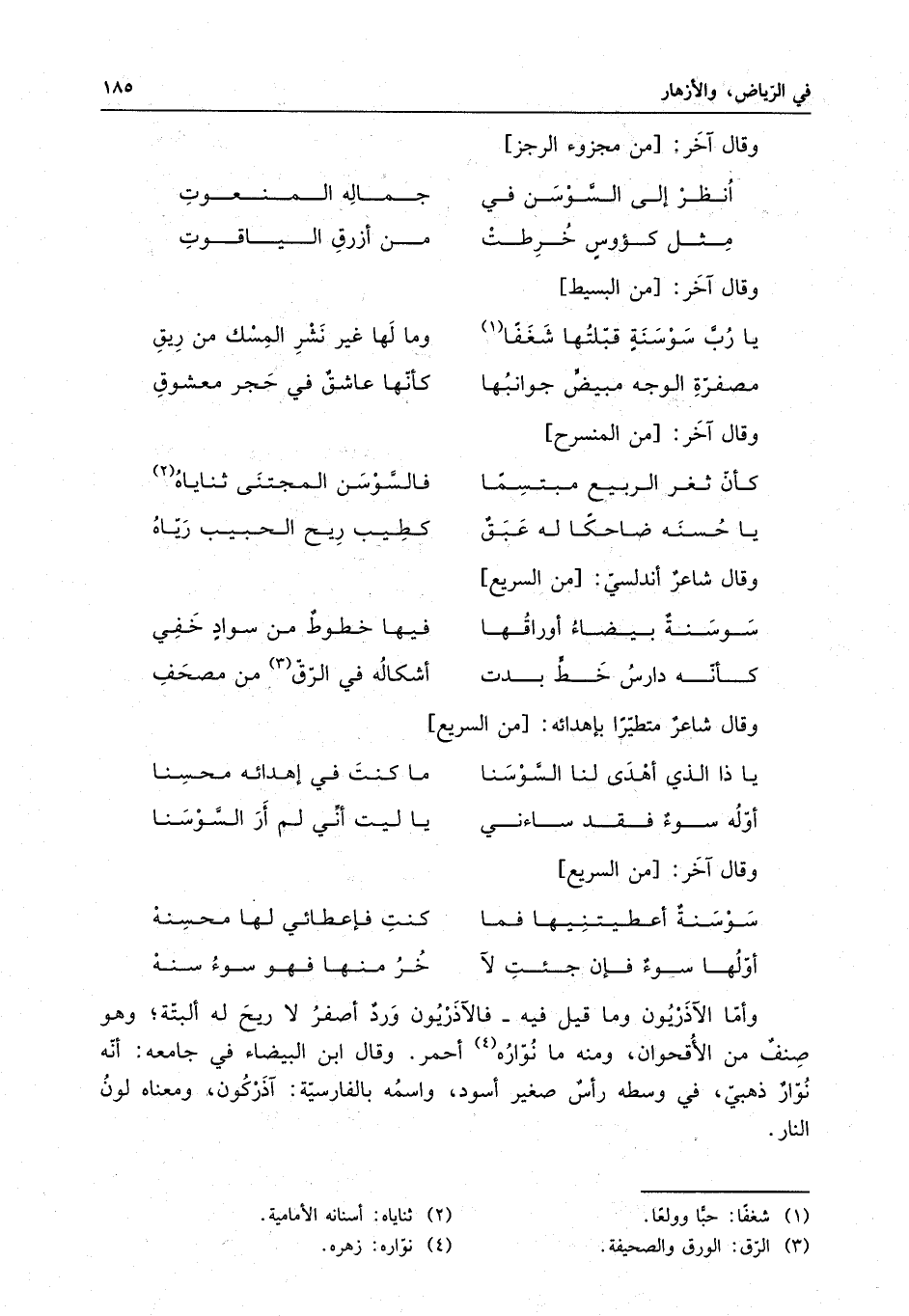 يا ذا الذي أهدى لنا السُّوسَنا . . . ما كنت في إهدائه محسِنا
