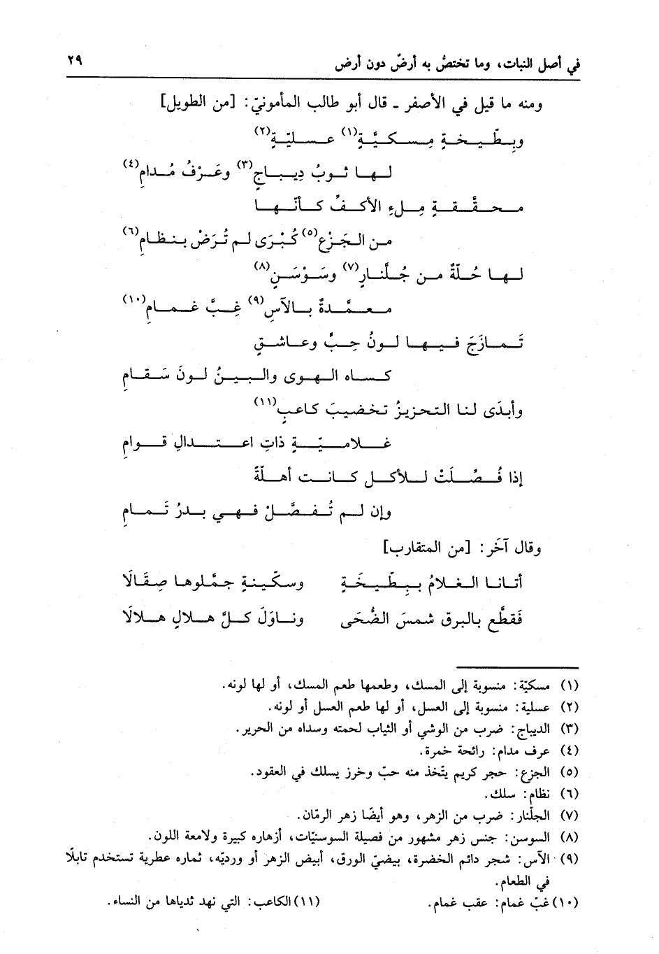 ومنه ما قيل في الأصفر ، قال أبو طالب المأموني :