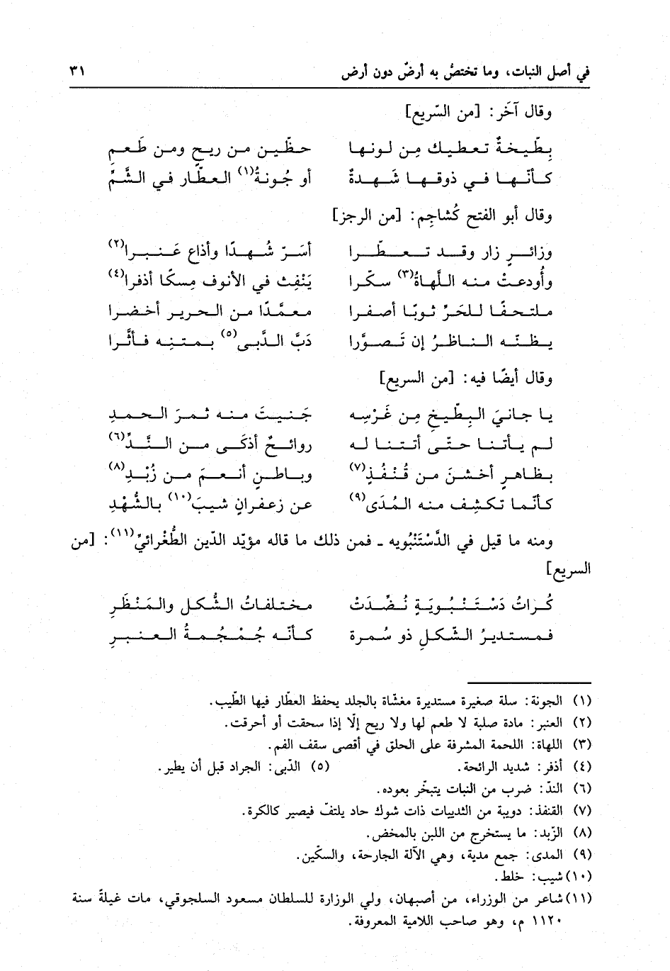 ومنه ما قيل في الدستنبويه ، فمن ذلك ما قاله مؤيد الدين الطغرائي :