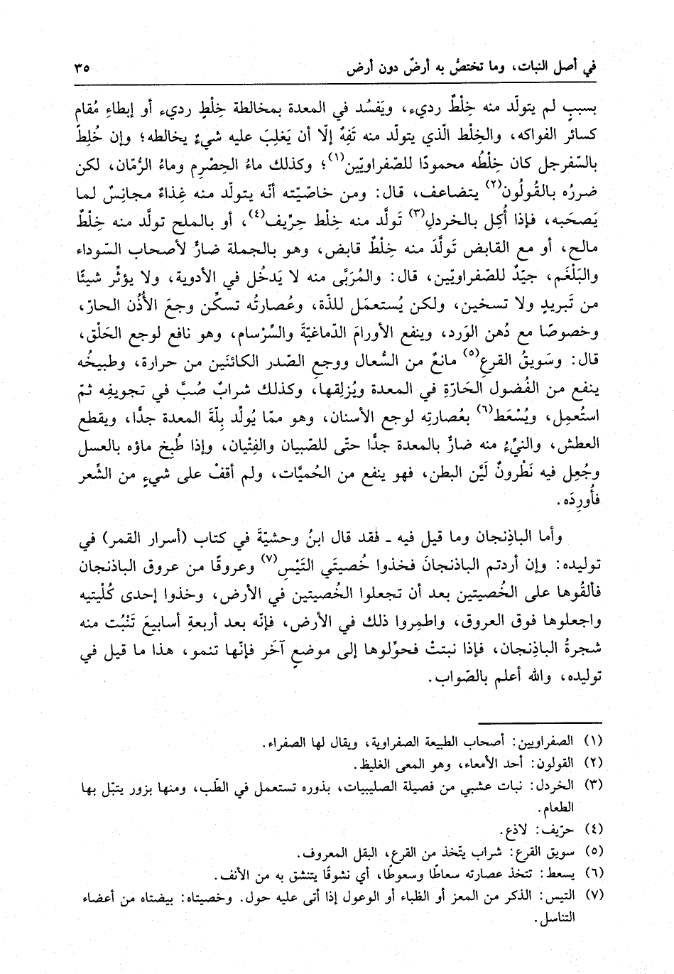 الباذنجان وما قيل فيه : فقد قال ابن وحشية في كتاب " أسرار القمر " في توليده : وإن أردتم الباذنجان فخذوا خصيتي التيس وعروقاً من عروق الباذنجان فألقوها على الخصيتين بعد أن تجعلوا الخصيتين في الأرض ، وخذوا إحدى كليتيه واجعلوها فوق العروق ، واطمروا ذلك في الأرض ، وخذوا إحدى كليتيه واجعلوها فوق العروق ، واطمروا ذلك في الأرض ، فإنه بعد أربعة أسابيع تنبت منه شجرة الباذنجان ، فإذا نبتت فحولوها إلى موضعٍ آخر فإنها تنمو ، هذا ما قيل في توليده ، والله أعلم بالصواب .