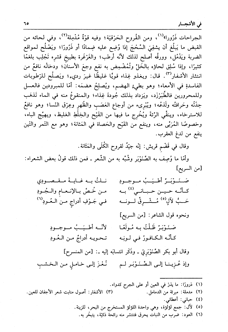 وأما ما وصف به الصنوبر وشبه به من الشعر : فمن ذلك قول بعض الشعراء :