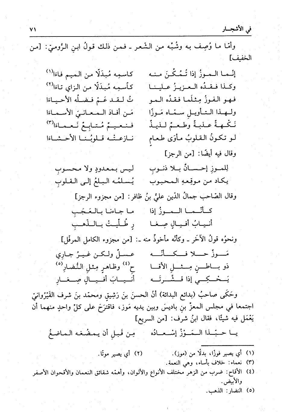 وأما ما وصف به وشبه من الشعر : فمن ذلك قول أبن الرومي :