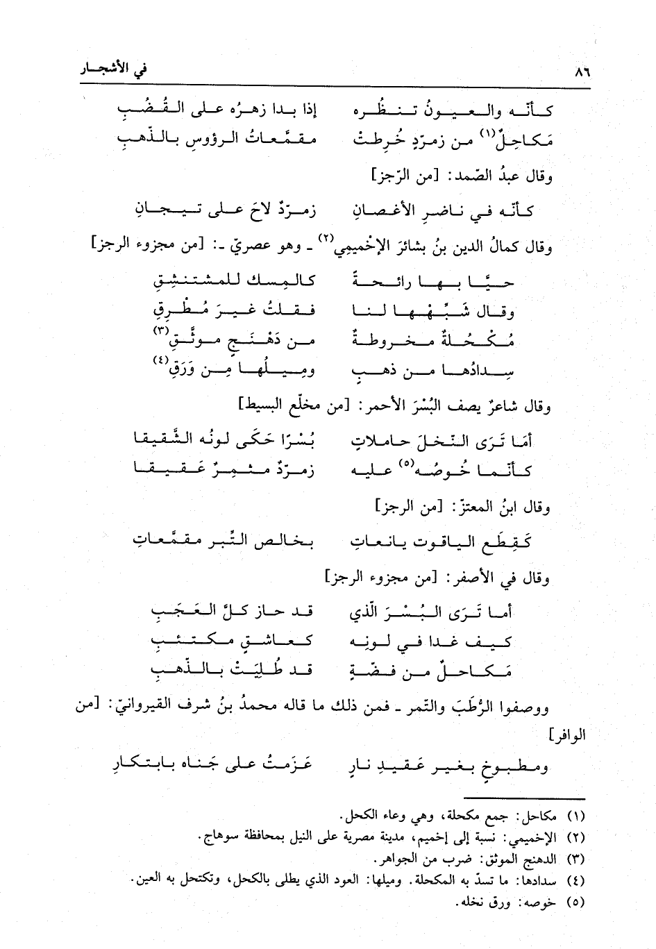 أما ترى النخل حاملاتٍ . . . بسرا حكى لونه الشقيقا