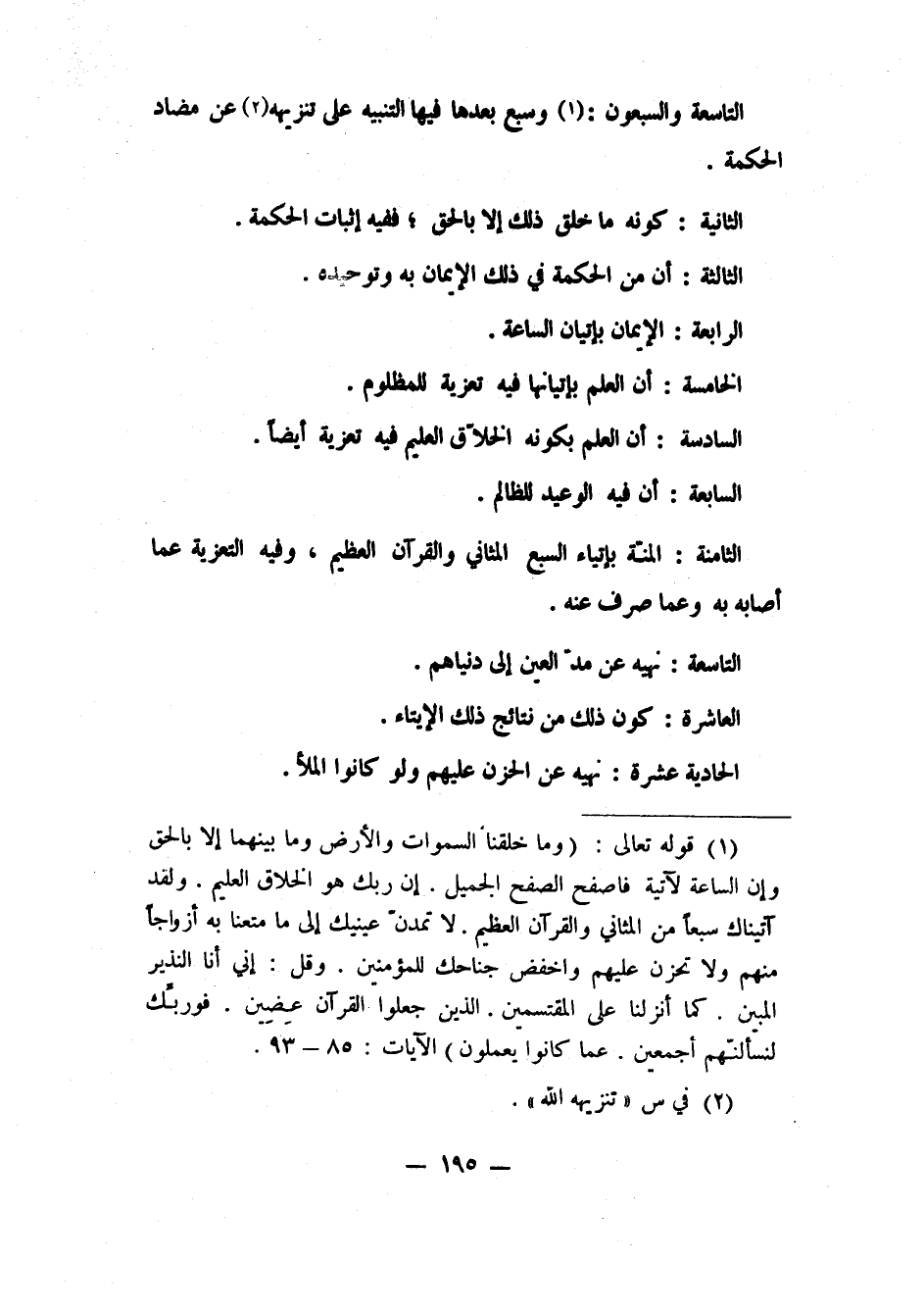 الأولى: التنبيه على تنزيهه 2 عن مضاد الحكمة.