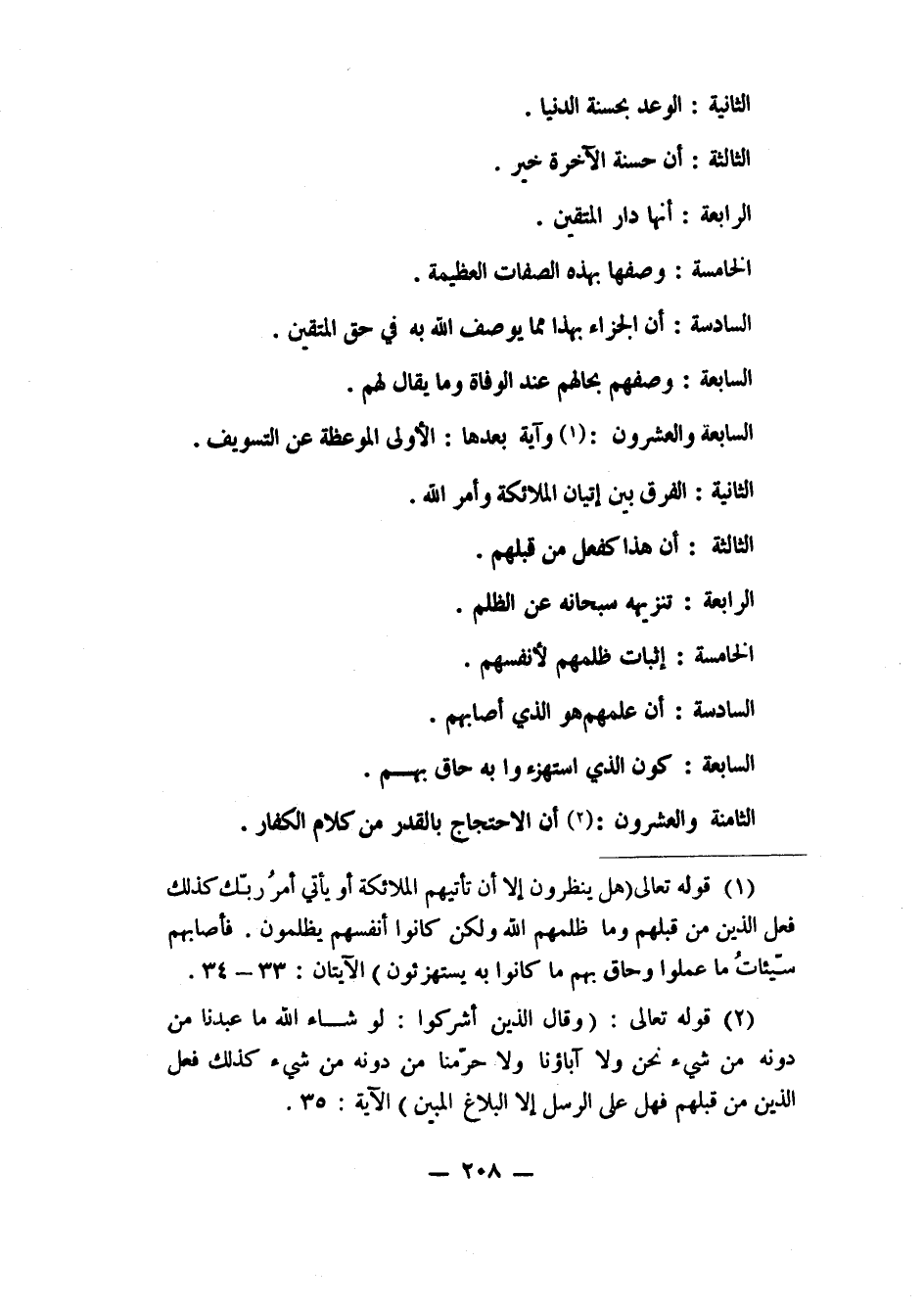 1 قوله تعالى {هل ينظرون إلا أن تأتيهم الملائكة أو يأتي أمر ربك كذلك فعل الذين من قبلهم وما ظلمهم الله ولكن كانوا أنفسهم يظلمون فأصابهم سيئات ما عملوا وحاق بهم ما كانوا به يستهزئون) الآيتان: 33-34.