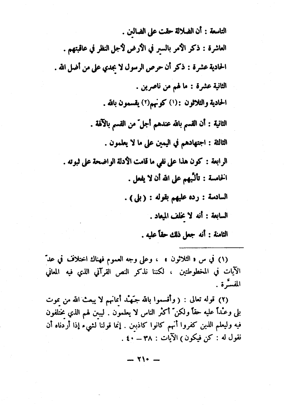 2 قوله تعالى: (وأقسموا بالله جهد أيمانهم لا يبعث الله من يموت بلى وعدا عليه حقا ولكن أكثر الناس لا يعلمون ليبين لهم الذي يختلفون فيه وليعلم الذين كفروا أنهم كانوا كاذبين إنما قولنا لشيء إذا أردناه أن نقول له كن فيكون) الآيات: 38-40.