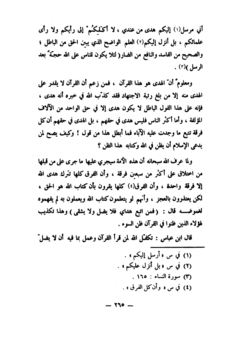 أني مرسل 1 إليكم هدى من عندي، لا أكَلِكُمْ إلى رأيكم ولا رأي علمائكم، بل أنزل إليكم 2 العلم الواضح الذي يبين الحق من الباطل، والصحيح من الفاسد، والنافع من الضار، {لِئَلَّا يَكُونَ لِلنَّاسِ عَلَى اللَّهِ حُجَّةٌ بَعْدَ الرُّسُلِ} 3: